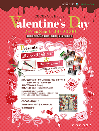 【予告】2月7日(土)、8日(日)COCOSAからのバレンタ…