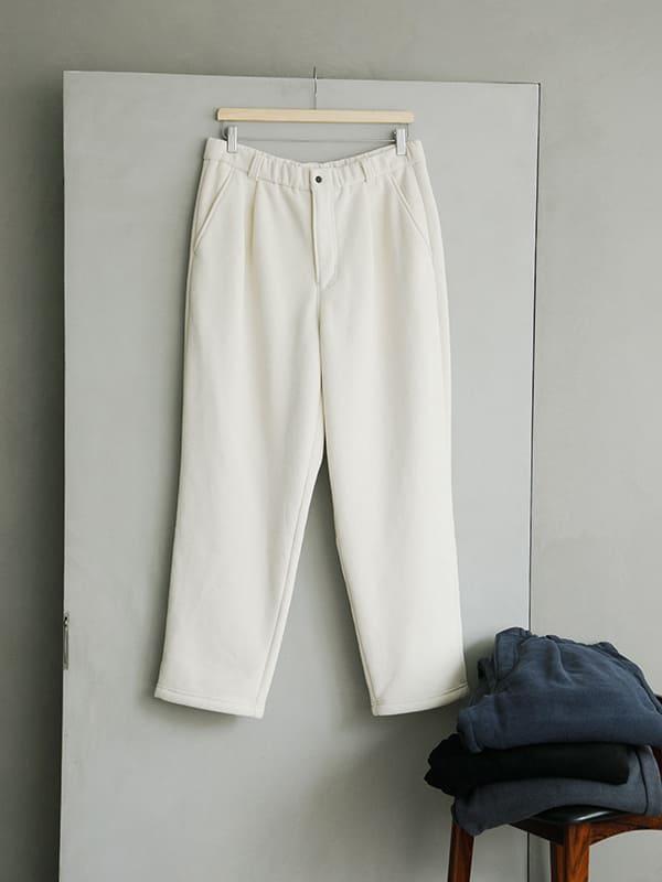 メンズからは定番のクルーネックと、新型のハーフジップ、フリースパンツの3型をラインナップ。程よくゆとりを持たせたシルエットと、クリーンな表情が魅力です。