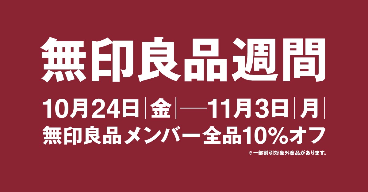 無印良品では2025年10月24日(金)~11月3日(月・祝)まで無印良品週間を開催します。無印良品メンバーは10%オフ対象になりますので、ぜひこの機会にご利用ください。