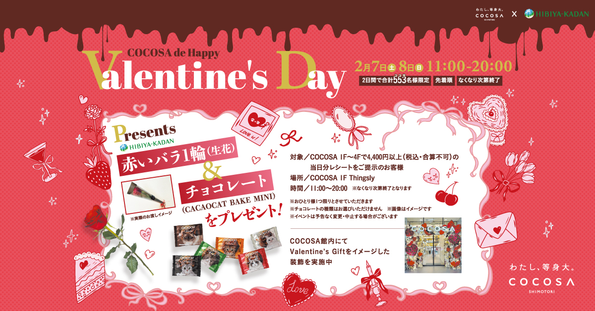 【予告】2月7日(土)、8日(日)COCOSAからのバレンタインプレゼント
