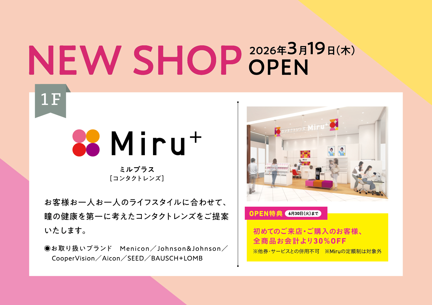 【NEW SHOP】3月19日(木) 1階「Miru+(ミルプラス)」オープン