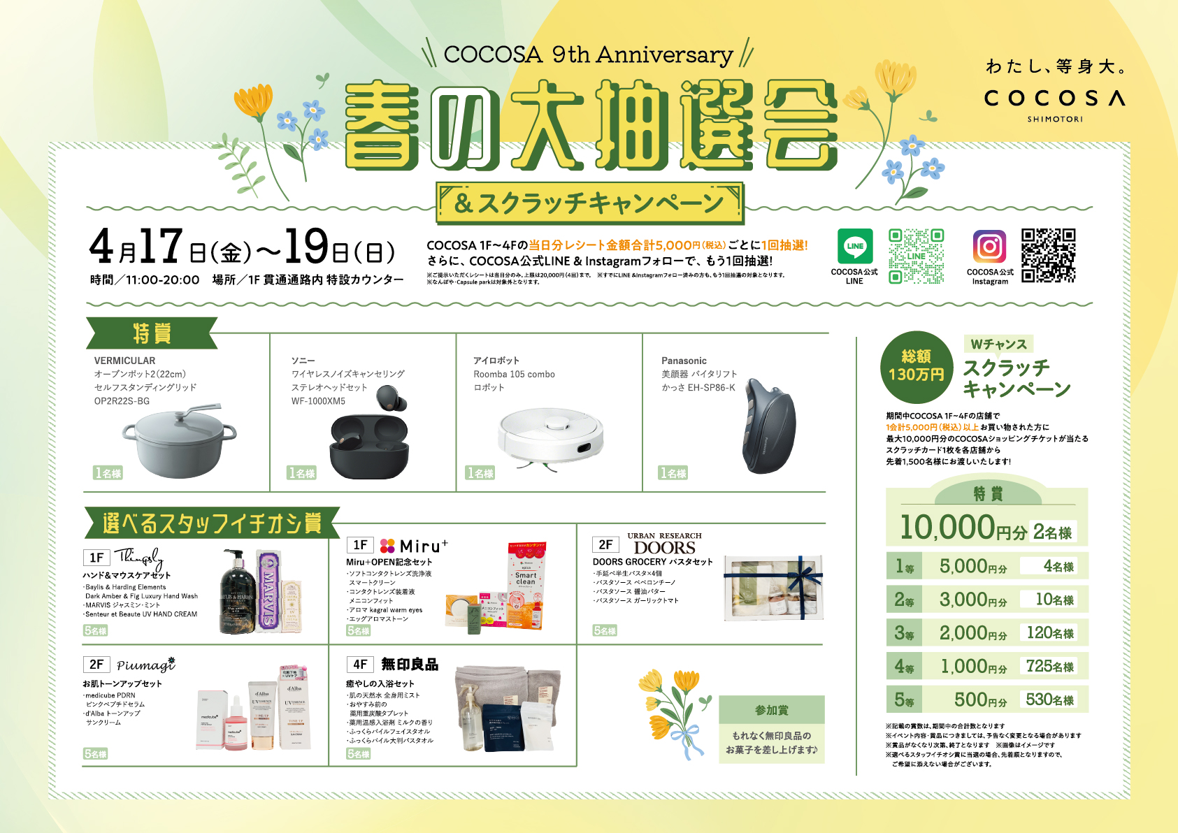 COCOSAでお買い物いただき、抽選会とスクラッチキャンペーンにぜひご参加ください!